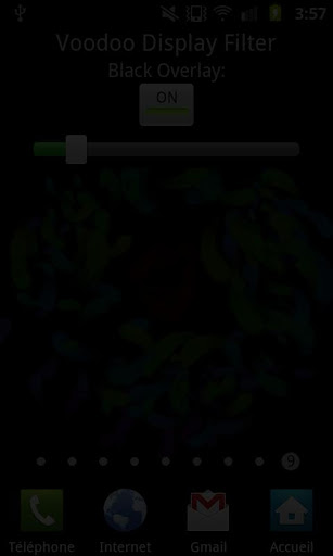 Voodoo Display Filter simply applies a black filter over the screen to make it darker. Other colored filters will be available as the app is updated, but if you want the screen darker, this app works like a charm.